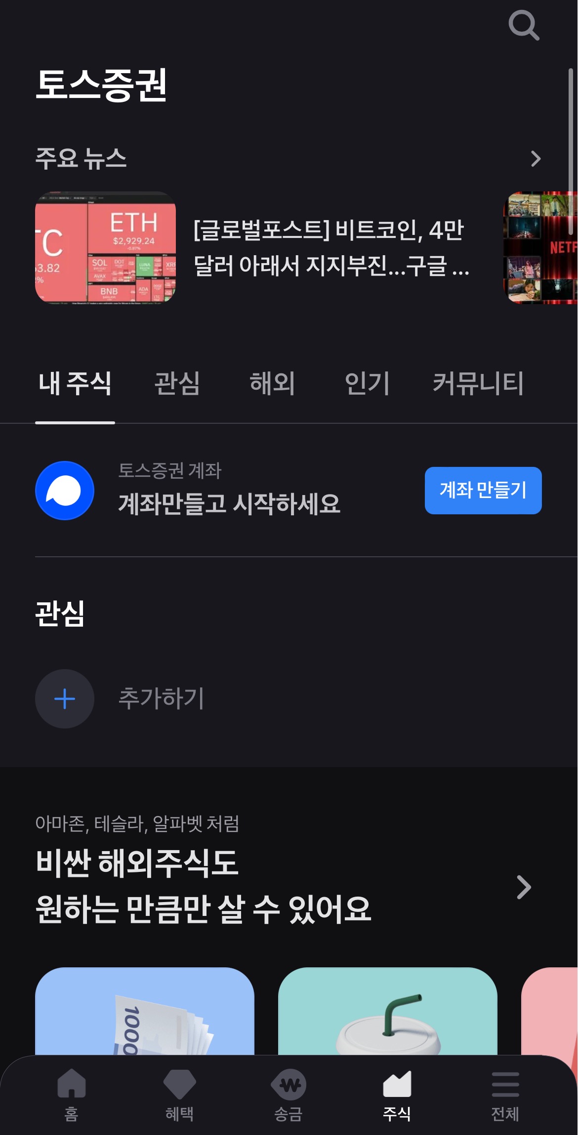 토스 주식 부분 둘러보는 거죠~ ㅎㅎ