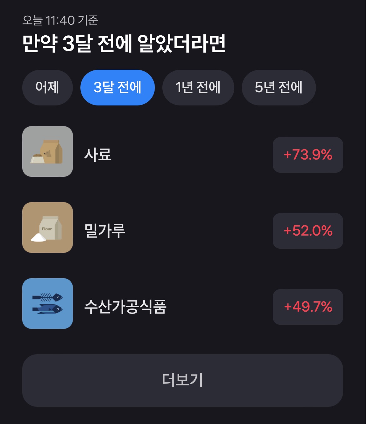 1. ~ 전에 알았더라면: 현재와 비교하여 어떤 종목이 상승세를 보여줬는지 파악하기 쉽습니다.