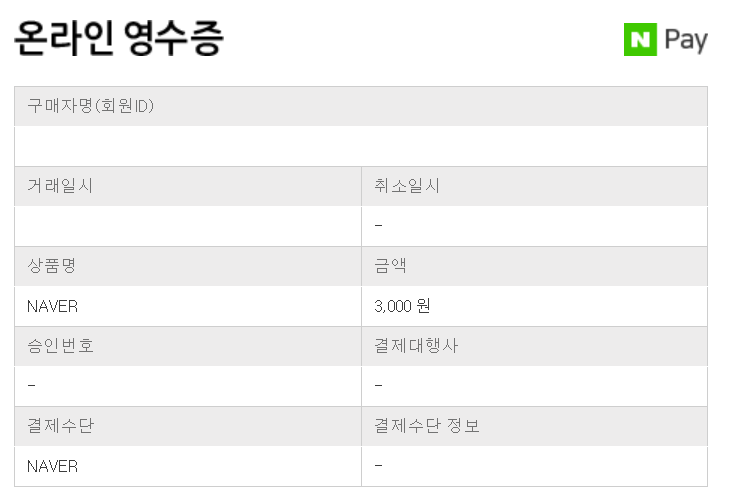 온라인 영수증의 상품명도 NAVER 이며 승인번호와 결제대행사, 결제수단 정보는 없으며 결제 수단도 NAVER입니다. 무엇일까요?