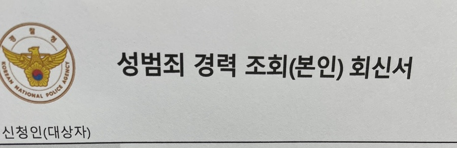 취업으로 인해 "성범죄 경력 및 아동학대 관련 범죄경력 조회서" 서류를 경찰서에서 떼오라고 해서