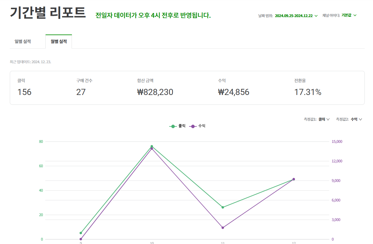 현재 조회 가능한 기간(90일) 실적 리포트입니다.