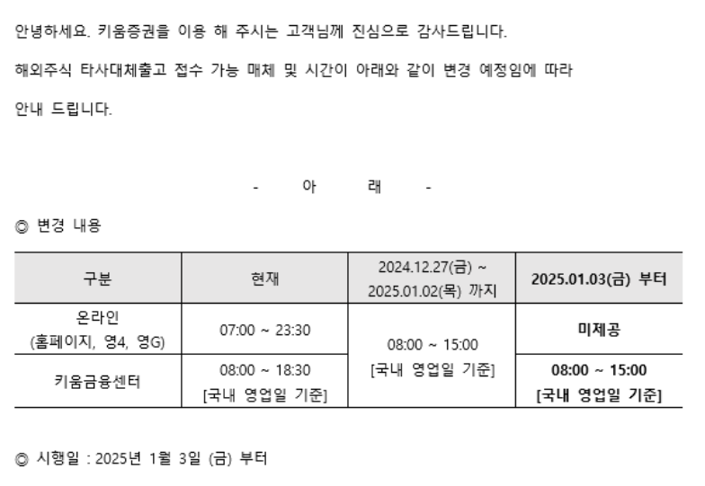 근데 보니까 국내 주식만 가능;;; 해외주식은 25년 1월 3일부터 온라인에서 불가능하게 바뀌었다....