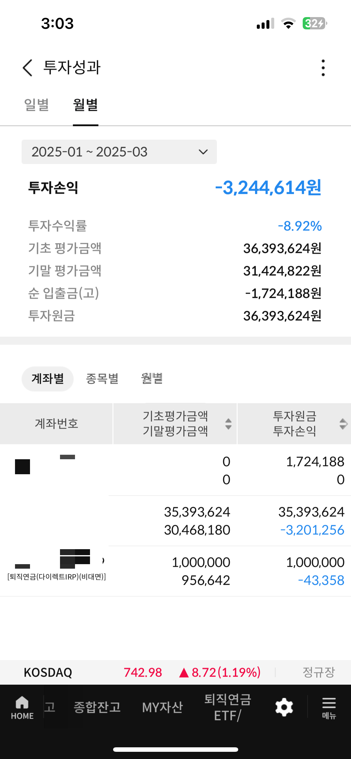 그리고 25년 들어서 미국주식장이 와장창 3월에 났기 때문에 이와같은 상황이 ;