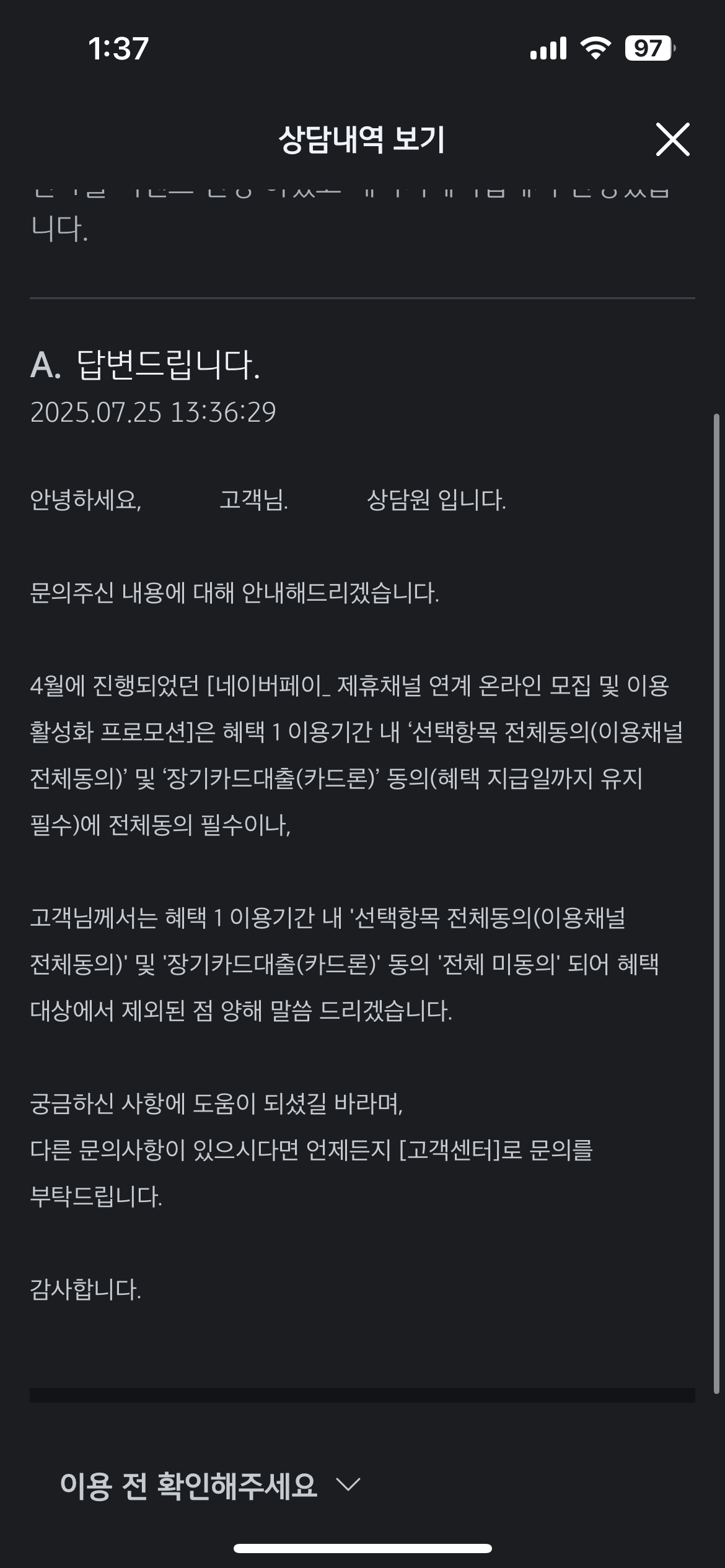 혜택은 못 받아서 너무나도 아쉽고 시간과 기타 노력이 낭비되어 허탈하다.