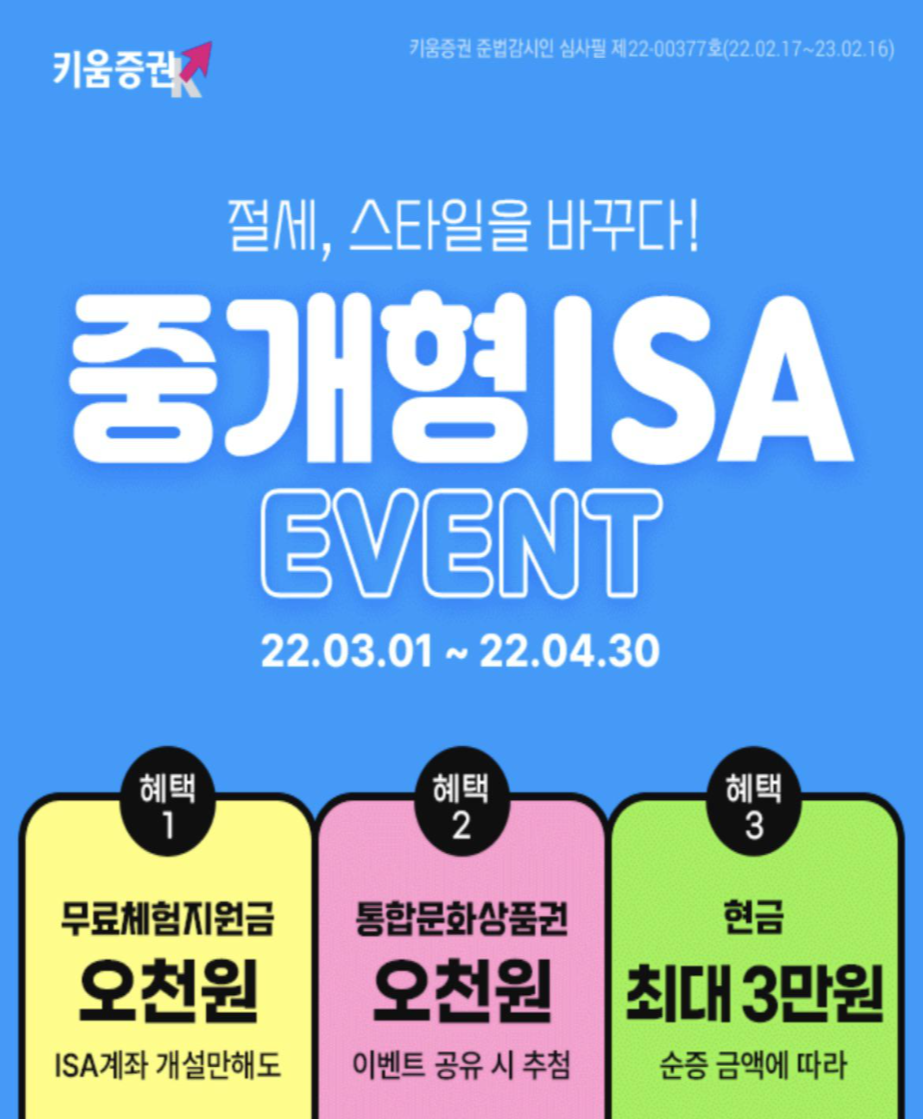 ISA 계좌 개설 시 본인이 편한 증권사 + 이벤트 혜택 확인하여 고르자.