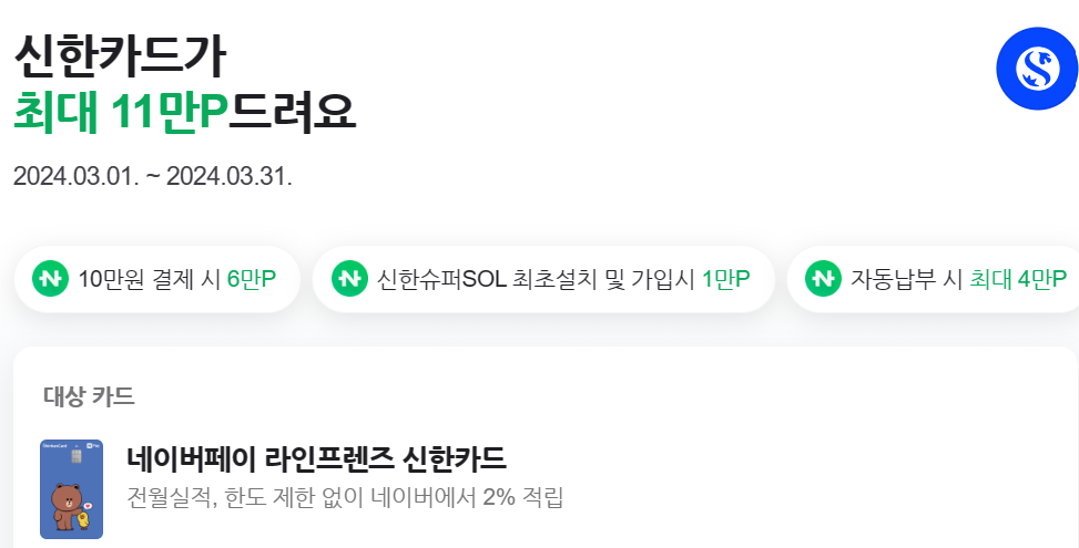 네이버페이 신용카드(라인프렌즈 신한카드) 정보 혜택